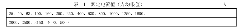 母線槽的額定電流值應(yīng)為表1中的標(biāo)準(zhǔn)值之一。
