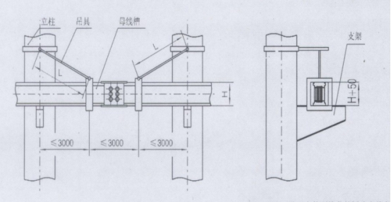 母線槽懸吊裝置母線檔吊式裝置兩裝置文架的間隔不大于3m