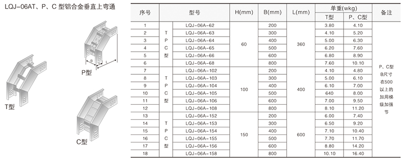 鋁合金電纜橋架在某種結(jié)構(gòu)形式中無(wú)其它結(jié)構(gòu)形式中的某-種產(chǎn)品類(lèi)別,選型可作代用表示。例如:在LQU-CC型槽式鋁合金電纜橋架結(jié)構(gòu)形式中,無(wú)鋁合金配線橋架中的LPC-03D, 即表示為LFC-CC-03D。