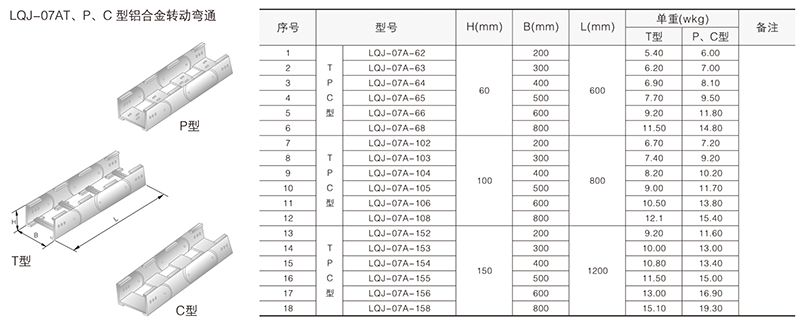 鋁合金電纜橋架在某種結構形式中無其它結構形式中的某-種產(chǎn)品類別,選型可作代用表示。例如:在LQU-CC型槽式鋁合金電纜橋架結構形式中,無鋁合金配線橋架中的LPC-03D, 即表示為LFC-CC-03D。